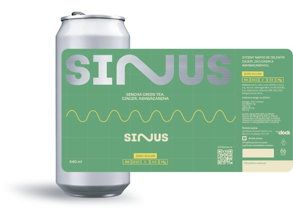 Složení: pitná voda, oxid uhličitý, zelený čaj, zázvor, ashwagandha, citrát hořčíku, kys. askorbová, vitamíny (B6, B12, D3), bergamotová silice