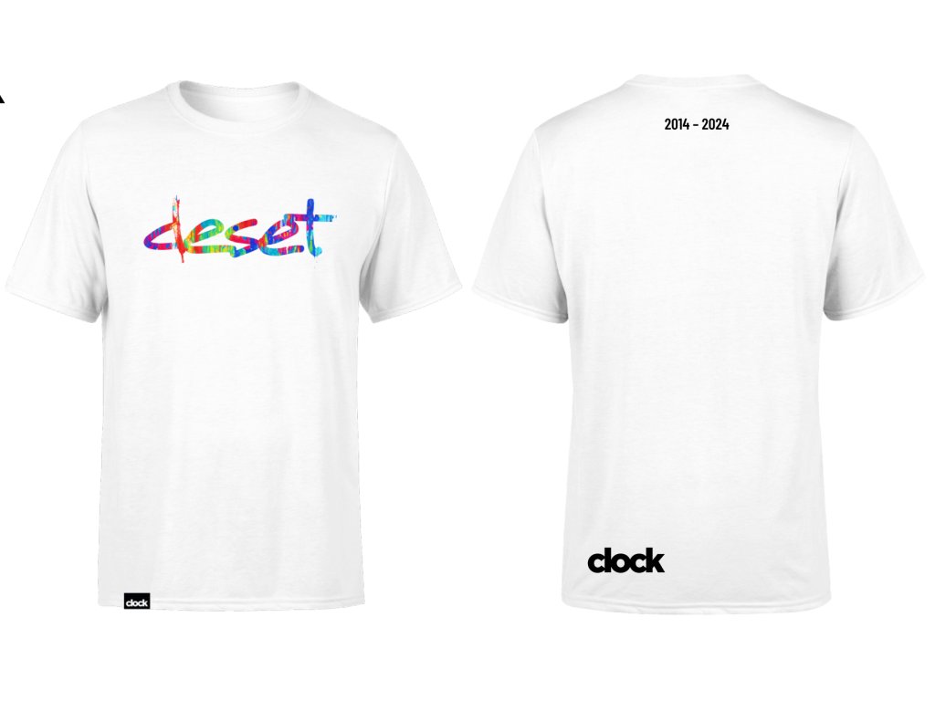 Na zadní straně trika, na zátylku, výroční roky pivovaru a na spodní straně logo Clock v černé barvě.